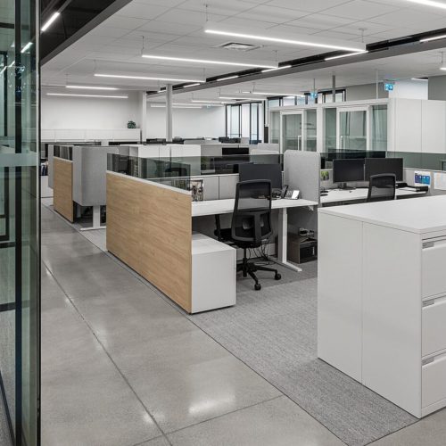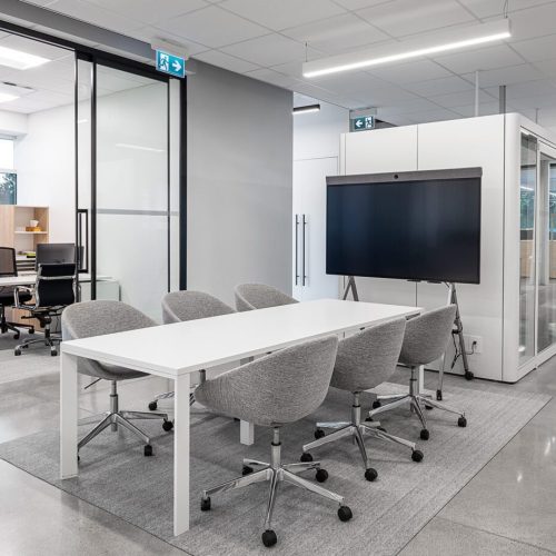 The layout was meticulously planned to facilitate easy navigation, with the use of carpeted pathways guiding employees through the space, punctuated by collaborative touch-down zones to encourage interaction.