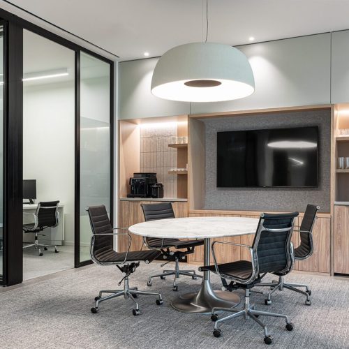 Wood tambour finishes further contributed to the cohesive flow of the space, adding warmth and character.