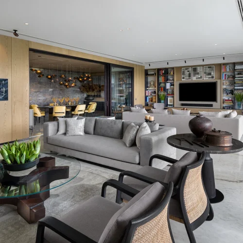 Thoughtfully detailed interiors—spanning the living, dining, and private areas—seamlessly combine sophistication with functionality, celebrating modern living with a refined aesthetic